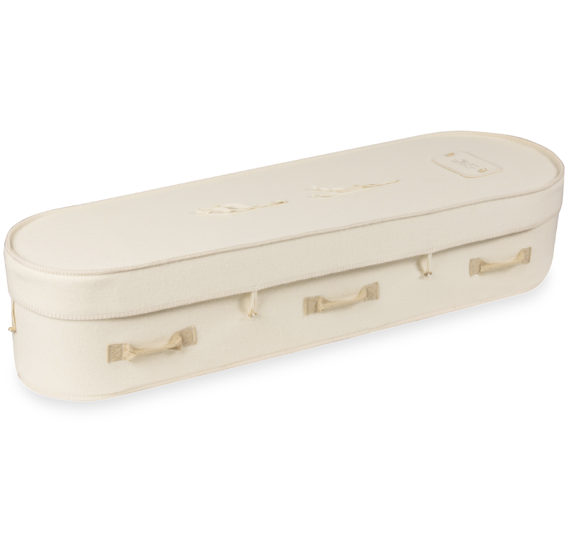 The Natural Legacy Woollen Coffin offers a gentle and environmentally conscious farewell, thoughtfully crafted from natural and sustainable materials. Featuring a pure new wool outer layer, this beautifully designed coffin reflects warmth, simplicity, and dignity. Its strong recycled cardboard frame is reinforced with a durable composite board base, ensuring both stability and integrity. Inside, it is generously lined with soft cotton and includes a woollen mattress and cotton pillow, providing a serene and respectful resting place. Ideal for eco-friendly and natural funerals, the Natural Legacy Woollen Coffin embodies comfort, sustainability, and a graceful return to nature.